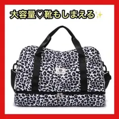2泊3日の旅行やジムに最適!大容量ヒョウ柄ボストンバッグ(乾湿分離・シューズ収納付)