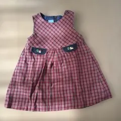 胸の切り替えにファミリアチェックが使われ、家や花の刺繍が連なり 可愛く人気のワンピースです。