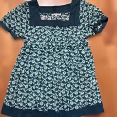 紫陽花(?)柄にコロンとした赤い編み玉のボタンがとても可愛いチュニックです 胸の開き具合もデコルテが美しく見えるカットになっております。