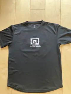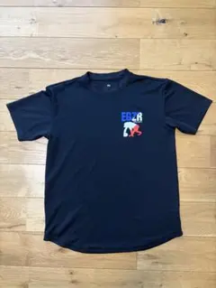 カラフルなグラフィックプリントが特徴の日本製ブラックTシャツ。