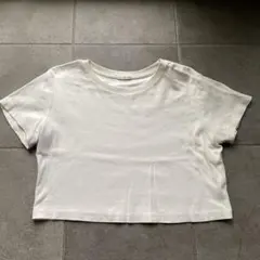 ダークグレーのクロップドTシャツ。