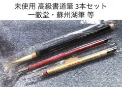 書道用具一式、ストライプデザインの収納バッグ付き。