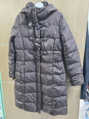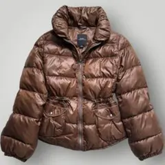 MaxMaraのダウンジャケットは、洗練されたブラウンの色合いと光沢のあるナイロン素材が特徴です。シンプルながらもエレガントな印象を与えます。