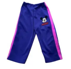 ミッキーマウスの刺繍が施された赤と青のツートンカラーのパンツです!
