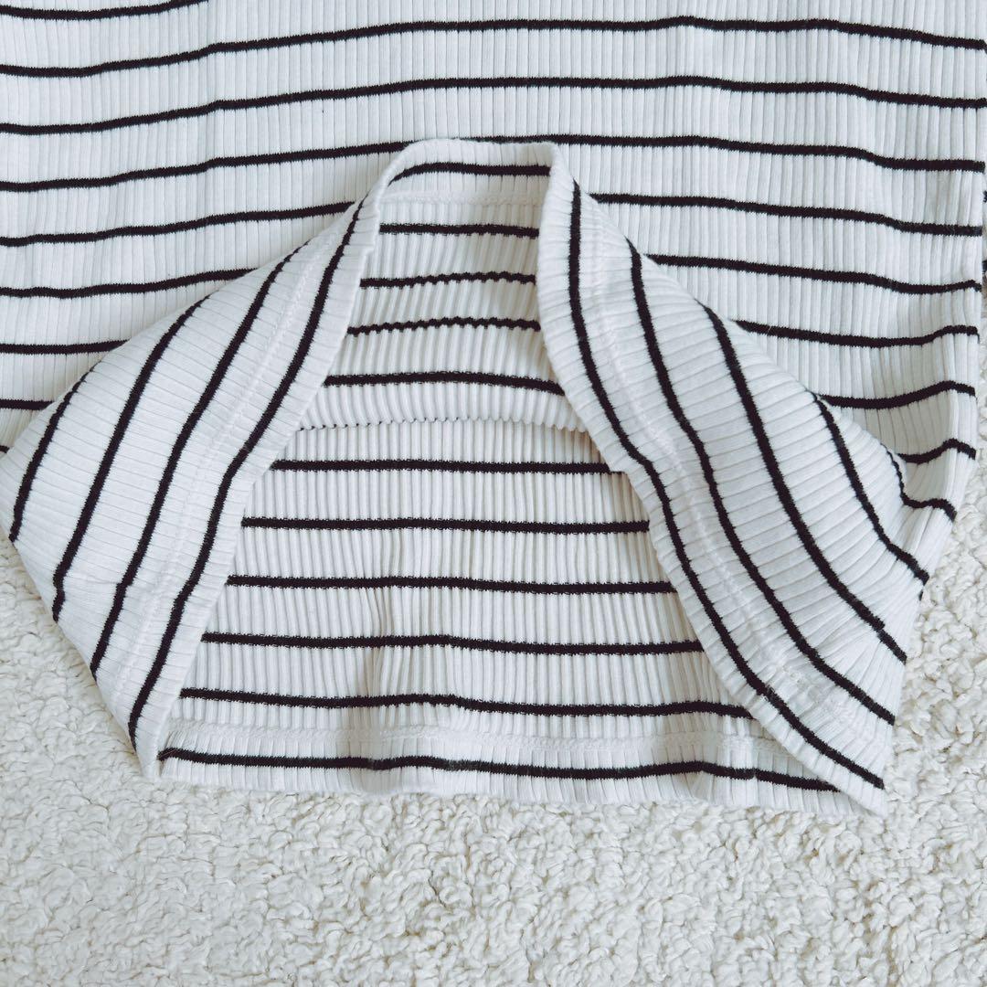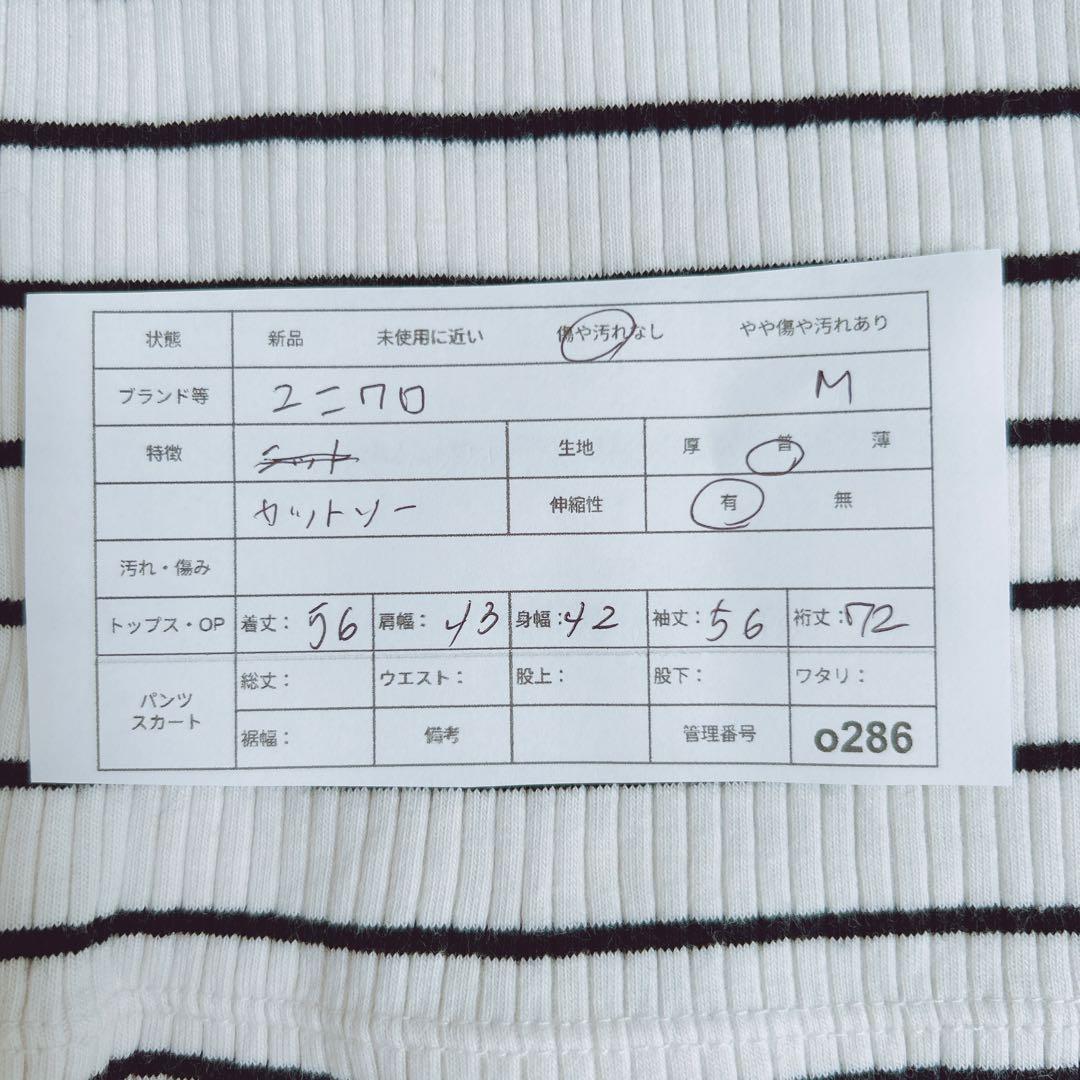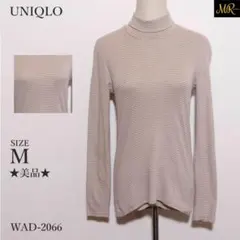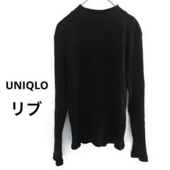 ユニクロ トップス ボーダー柄 ハイネック リブ 長袖カットソー コットン