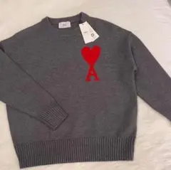 新品 Amiparis グレー ハート刺繍 セーター L 男女兼用