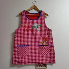 トイストーリーのチェック柄と可愛いキャラクター刺繍のエプロン。
