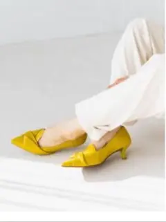 レザーレースアップパンプスです。足首に結ぶ紐を取って通常のパンプスとしても履いていただけます。