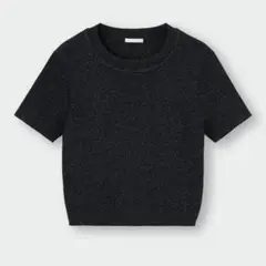 ジーユー フロントボタンセーター 半袖 薄手 ブラック 黒 無地 洗える XL