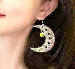 大きなビジュとラインストーンでキラキラ輝くネックレスとピアスのセットです。