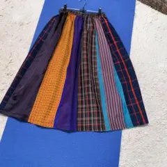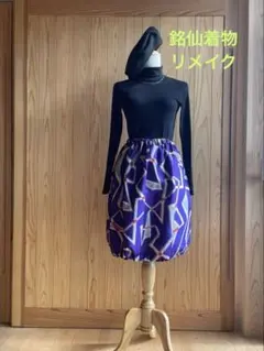 最終セール❗️世界に1点❣️着物リメイク 古布 バルーンスカート 銘仙(めいせん)