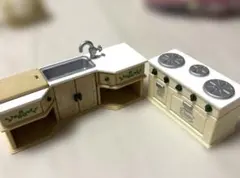 シンクとコンロが付いたキッチンセット、収納スペースあり。