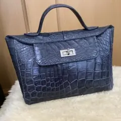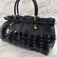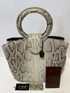 ノーブランド 蛇革 ダイヤモンドパイソンレザー ラージサイズ ハンドバッグ