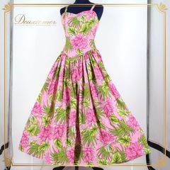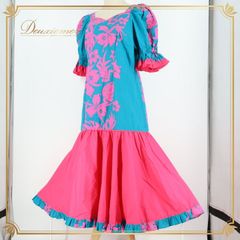 鮮やかな花柄のフラダンスロングドレス。ハワイアン、リゾートワンピース。