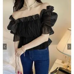 新品未使用 grl ドット柄シアーバルーンスリーブブラウス Mサイズ