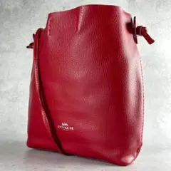 鮮やかな赤のレザーショルダーバッグ、取り外し可能なストラップ付き。