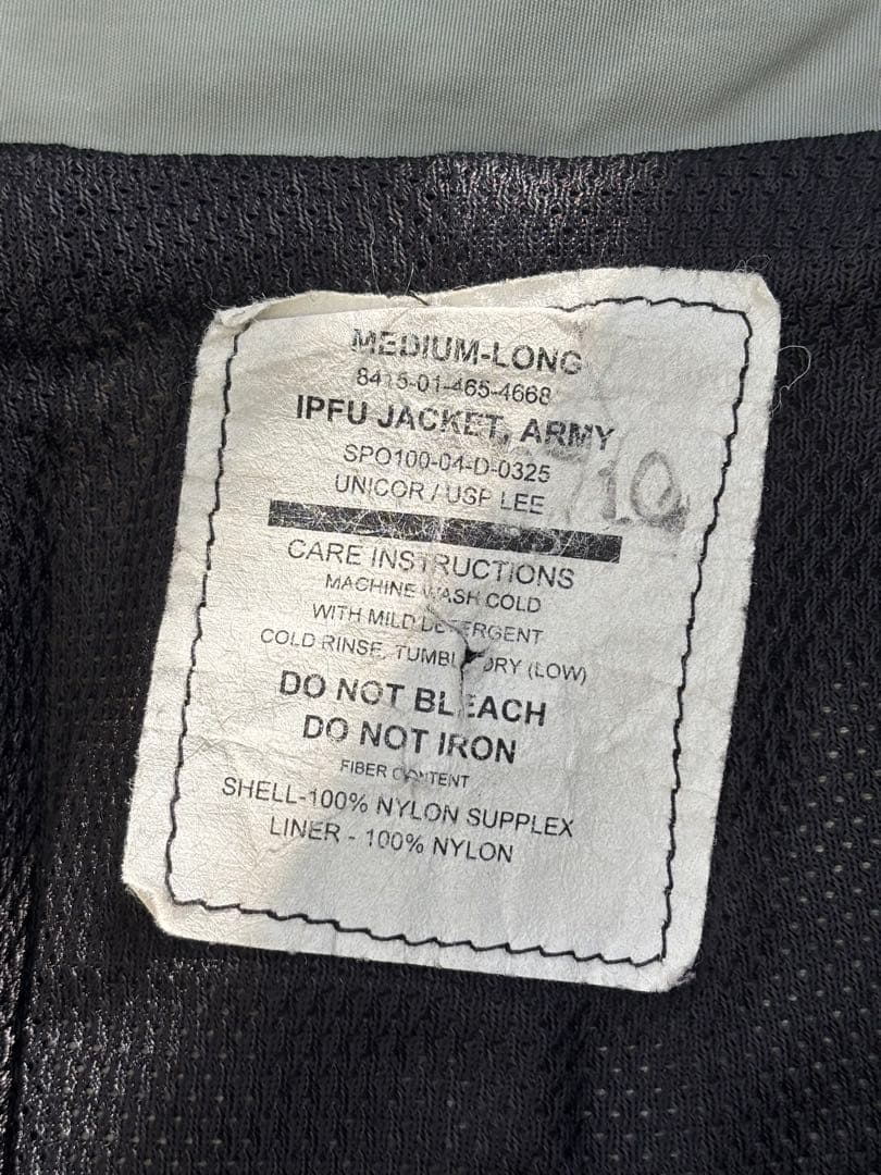 大阪の古着屋で購入しました。軽量で耐久性のあるナイロン製のミリタリージャケット、ジッパー前開きとV字型のデザインが特徴。
