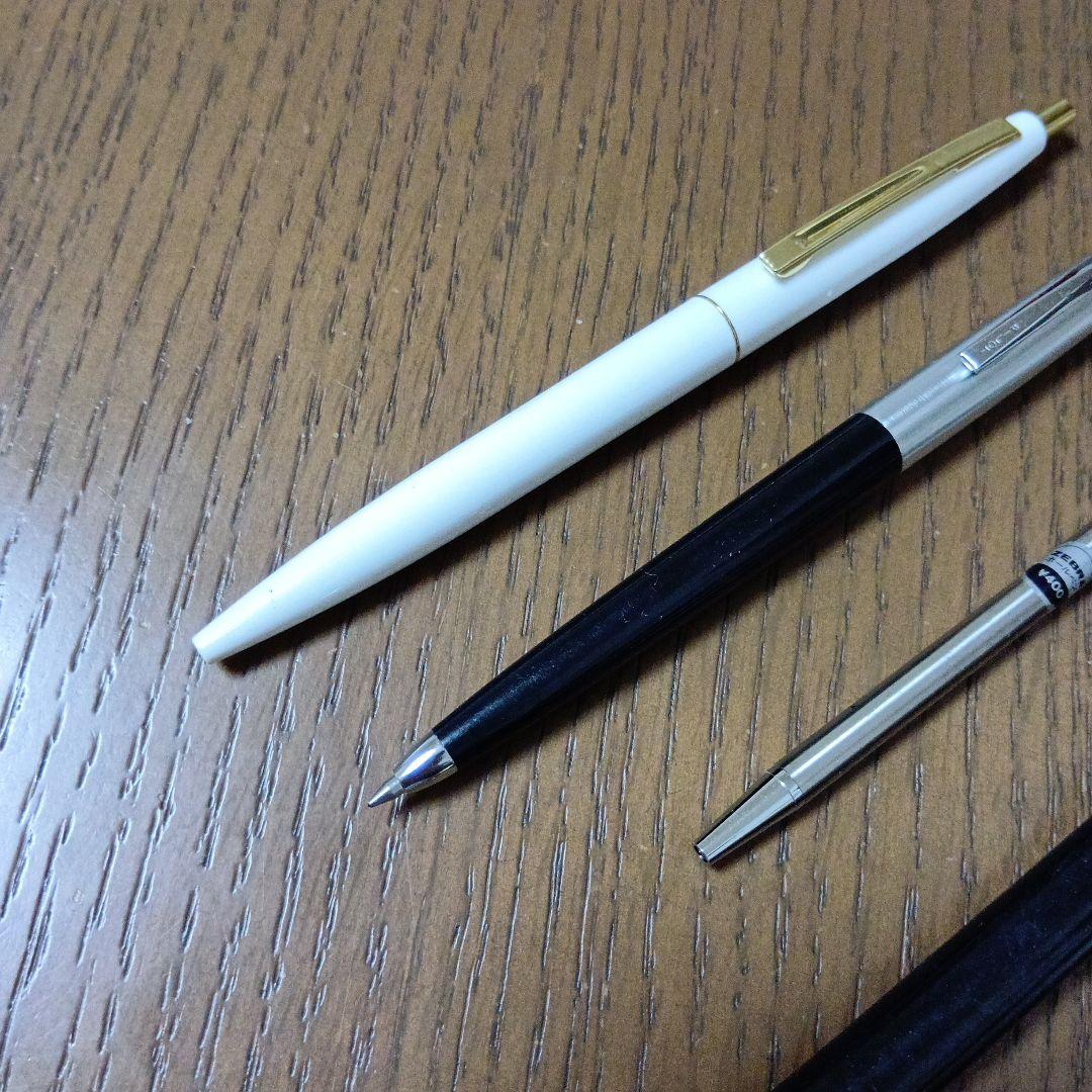 使用品です。パイロット2本(黒銀軸、白軸シャーボ)はノベルティ商品です。白軸シャーボの黒インクはドライアップして書けませんので、互換性があるリフィルをお付け致します。ほか筆記可能ですが、インク残量はわかりかねます。ご検討よろしくお願い致します。