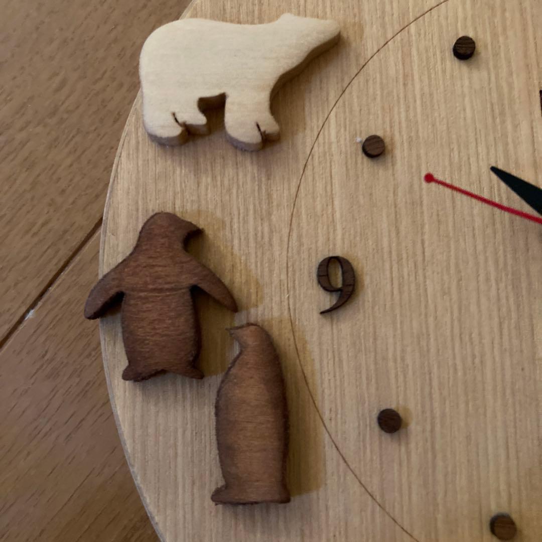 立体的な動物と飛行機が特徴の木製インテリア時計。