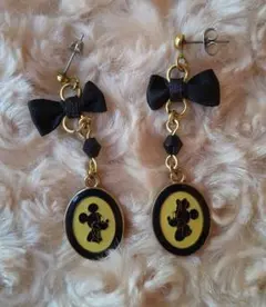 ミッキー型のシルバー色ピアス、クリスタル風ストーン付き。