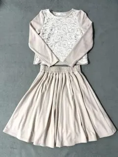 フロントに繊細スカラップフラワーレースを貼ったポンチセットアップ。