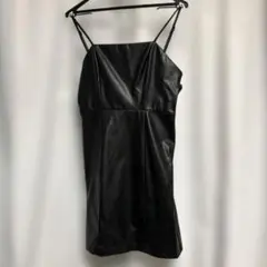 しわ加工のブラックキャミワンピース、調整可能なストラップ付き。エンボス加工。