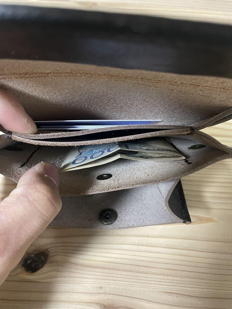 3部屋ございますので、カード入れ、お札入れ、小銭入れに三つに分けて収納が可能です。