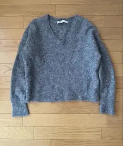 オレンジのダイヤモンド柄が特徴のVネックセーター