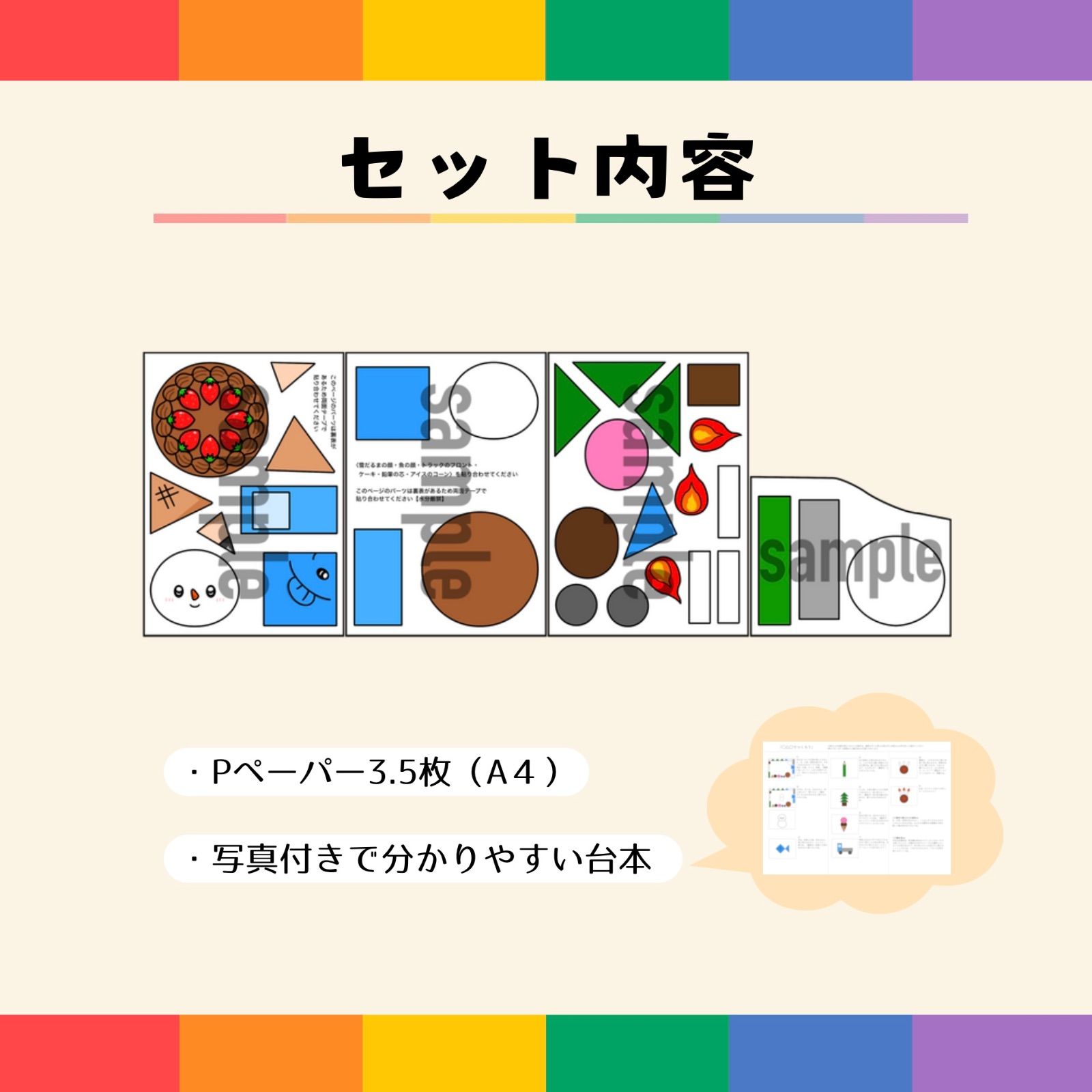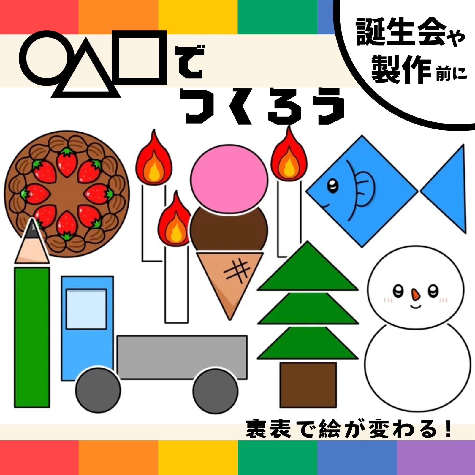 パネルシアター「◯△□でつくろう【中サイズ・未カット】」(丸三四角かたちまるさんかくしかく導入製作形保育教材おたんじょうびかいお誕生日会)★