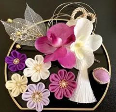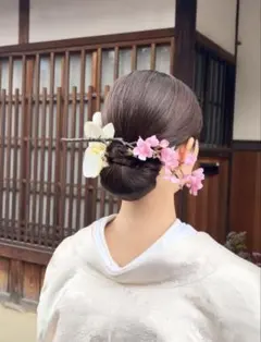 胡蝶蘭とパールの華やかな髪飾りで、和装にぴったりのスタイルを演出します。