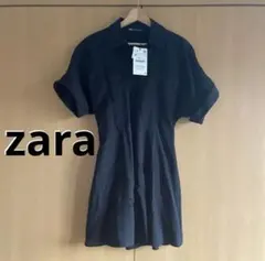 美品 ZARA 黒 半袖 フリル付き ロングワンピース