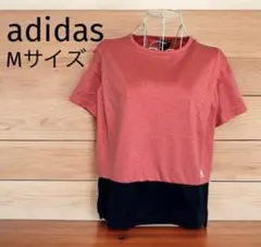 adidasのロゴが特徴的な濃いめサーモンピンクの半袖Tシャツ。
