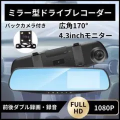 ドライブレコーダー前後バックカメラ 付き ドラレコ ルームミラー型 4.3インチ