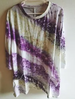 花柄とペイズリーのデザインが特徴の七分袖トップス。