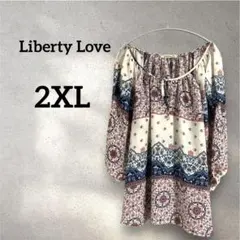 美品✨christopher & banks 【XL】花柄五分袖トップス 総柄