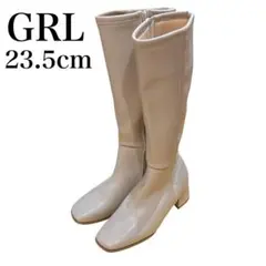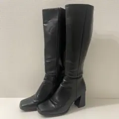 GRL スクエアトゥレザーチャンキーヒールロングブーツ zr1024 24cm