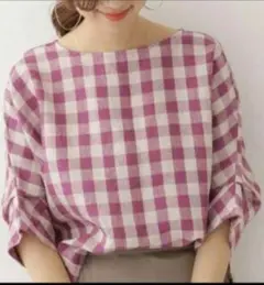 アーバンリサーチドアーズ 麻混 ブラウス【one】八分袖 ネイビー Vネック