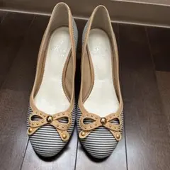 汚れあり値下げ リズラフィーネ パンプス リボン ベージュ 23.5 美品