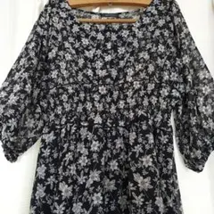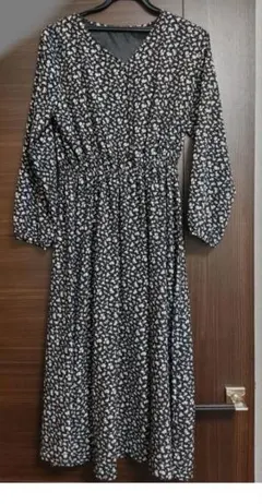 未使用に近い 花柄刺繍の黒ロングワンピース