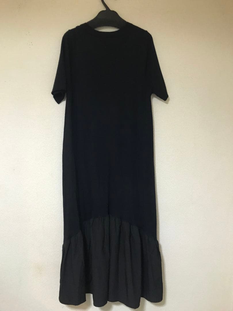 お色はブラックで、ニット素材は伸縮性がある異素材ワンピースです。