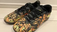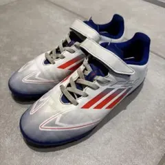 青いストライプデザインのadidas Crazyfastシューズ、フラットソールで安定性抜群。