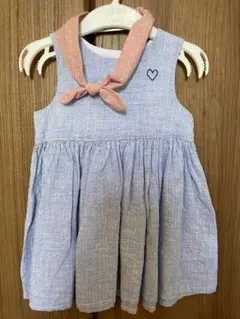 ダークグリーンのドット柄ベルベットワンピース、サイズ74
