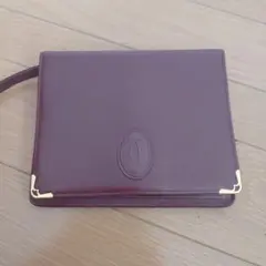 高級感のあるブラウンレザーのクラッチバッグ、金具付きでスタイリッシュ。