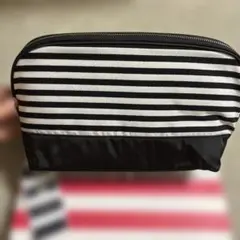 ストライプのフリルが特徴のブラックポーチ、ポリエステル製でサイズFです。