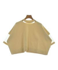 クリーム色の長袖ニット、ゆったりしたシルエットで2wayで使えるデザイン性の高いニットトップス。