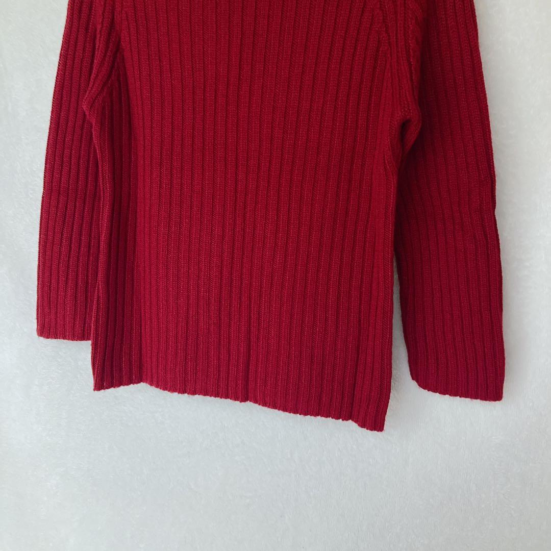 リブ編みのくすみ赤 タートルネックセーター、長袖デザインで温かさを提供します。