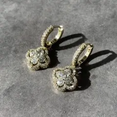 【新品・未使用】幸運の象徴、クローバーモチーフをあしらった上品なパヴェピアスです。