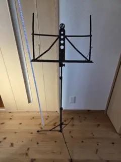 金属製の折りたたみ式譜面台で、高さ調整が可能。