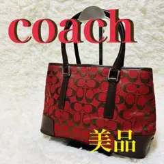 良品 COACH ハンドバッグ キャンバス ブラウン シグネチャー 肩掛け