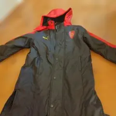 フード付きのブラックダウンコート、140サイズ、キルティングデザインで保温性に優れています。